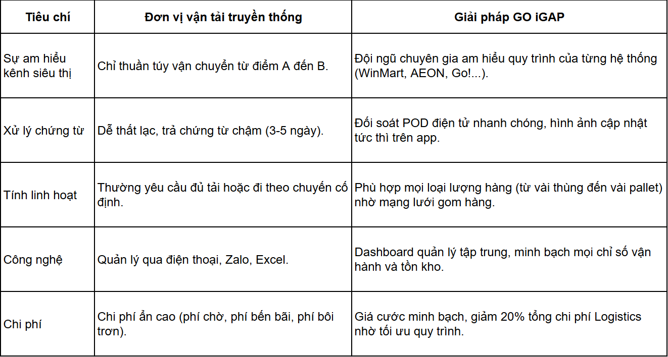 Trong kỷ nguyên bán lẻ hiện đại, đưa hàng vào hệ thống siêu thị (MT - Modern Trade) là "cánh cửa vàng" để các doanh nghiệp SME mở rộng thị trường. Tuy nhiên, Logistics cho kênh siêu thị lại là một "bài toán khó" với những quy định khắt khe về thời gian, chứng từ và quy chuẩn hàng hóa. Bài viết này sẽ phân tích chi tiết giải pháp Giao hàng siêu thị nằm trong hệ sinh thái GO iGAP, giúp doanh nghiệp biến Logistics từ chi phí thành lợi thế cạnh tranh.