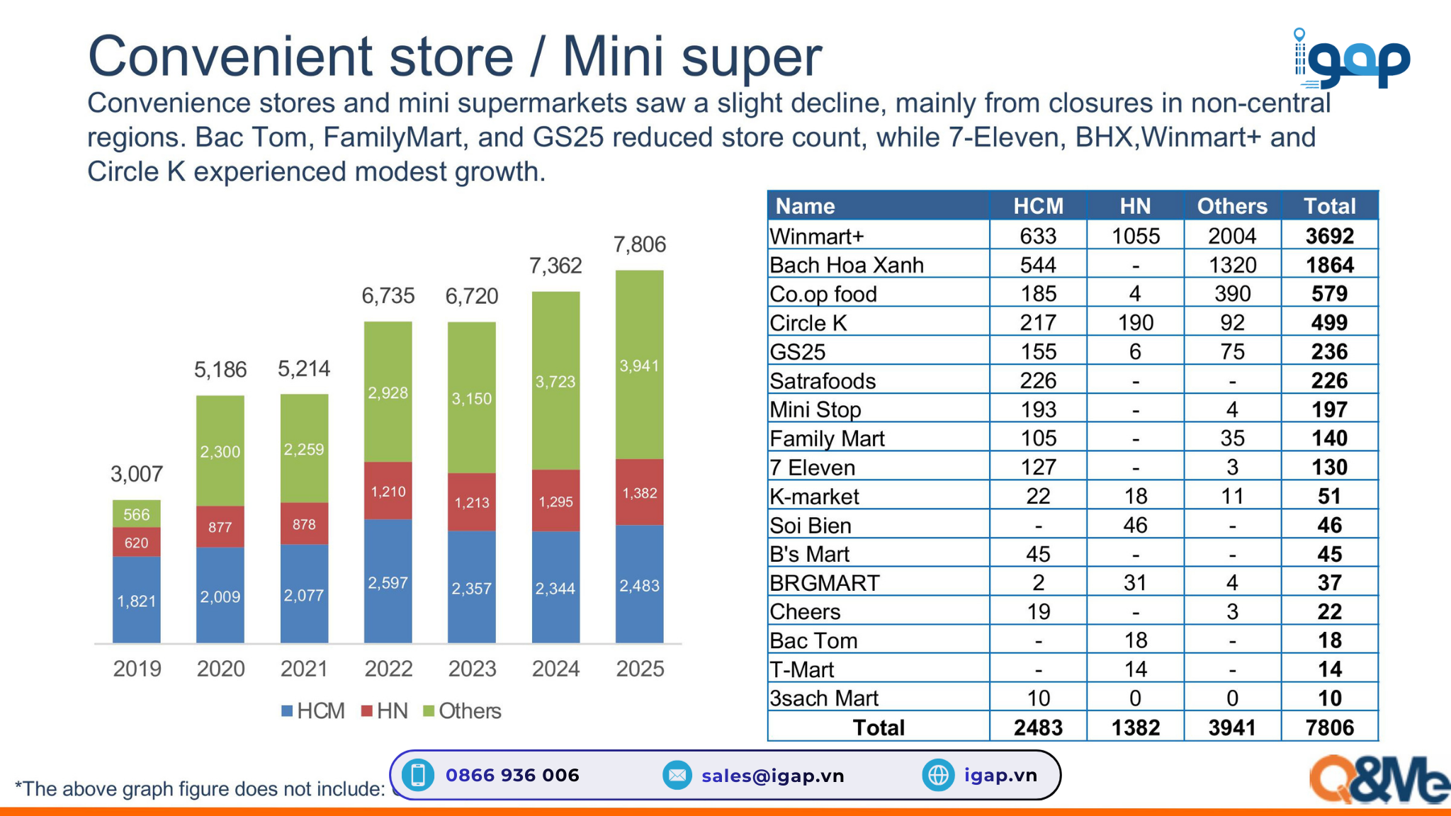 Xét về quy mô, cửa hàng tiện lợi và siêu thị mini hiện là kênh lớn nhất trong hệ sinh thái bán lẻ hiện đại. Đến năm 2025, tổng số điểm bán đã vượt 7.800 cửa hàng trên toàn quốc.